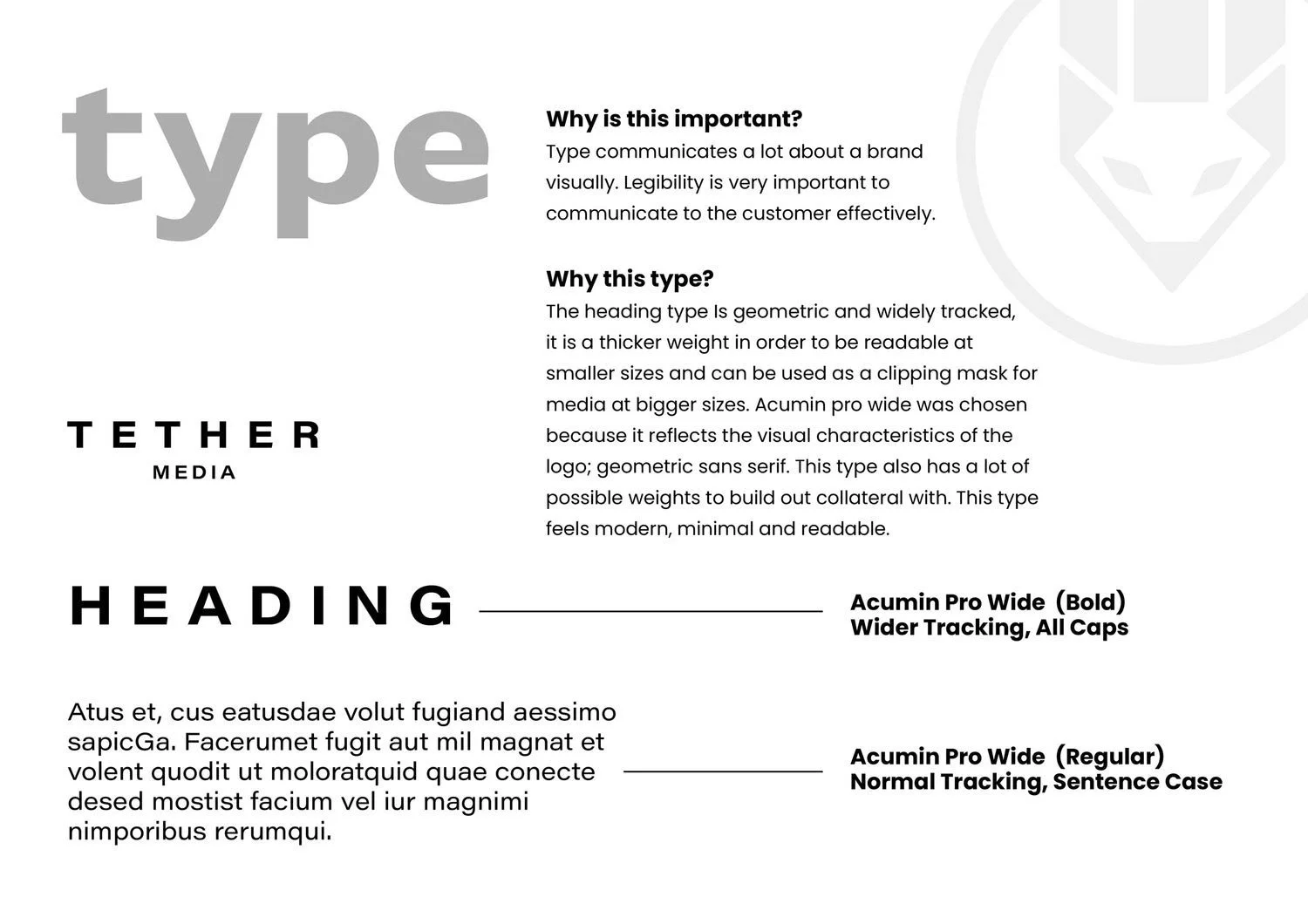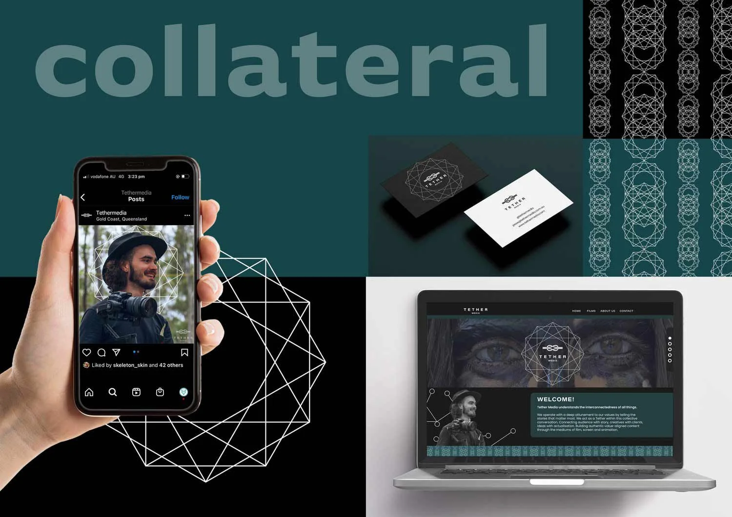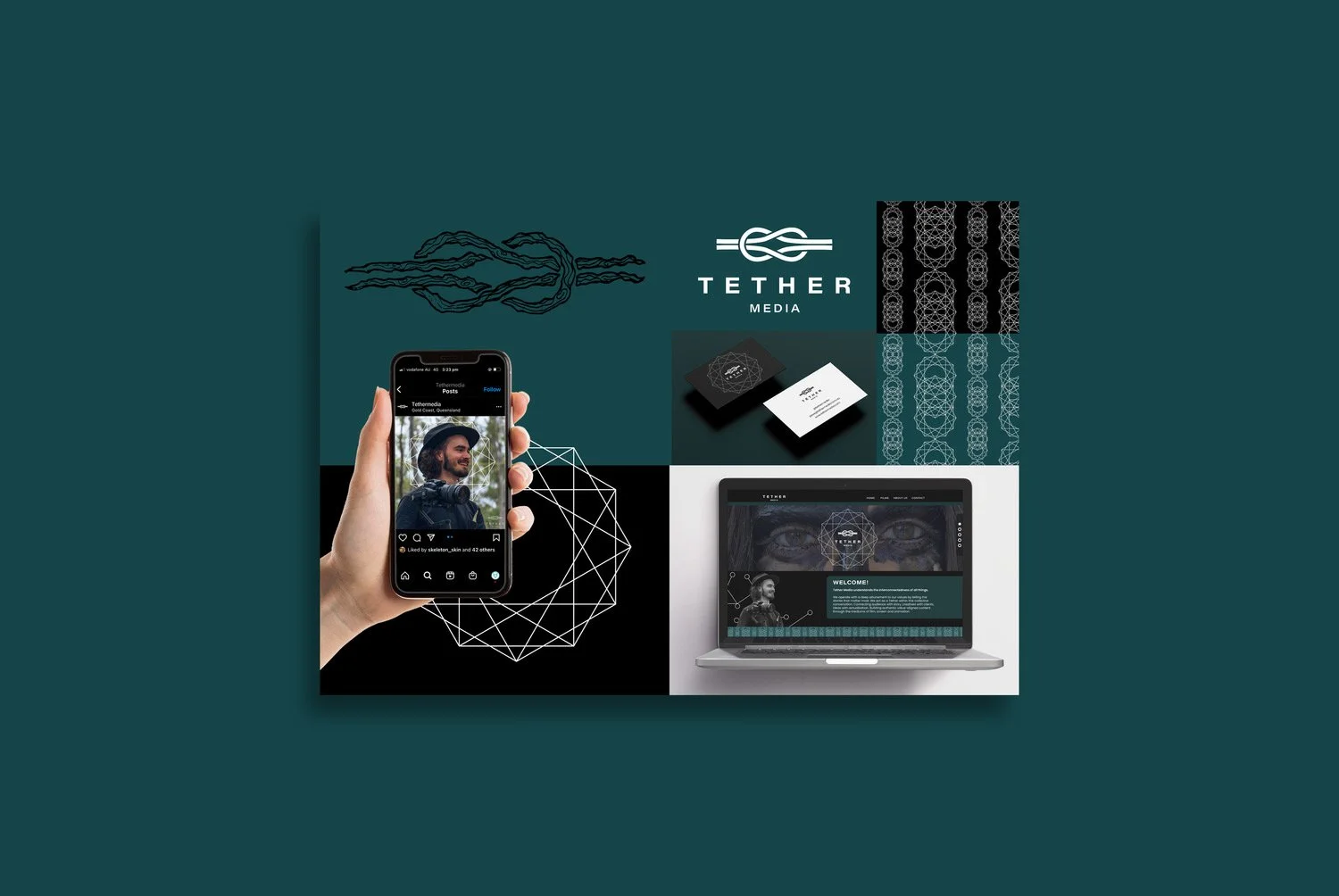 The challenge was to create branding and visual identity for a media company, Tether Media. The brand had to be effectively communicated across multiple channels, including web, print, social media, film reels, etc.